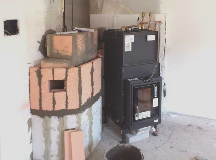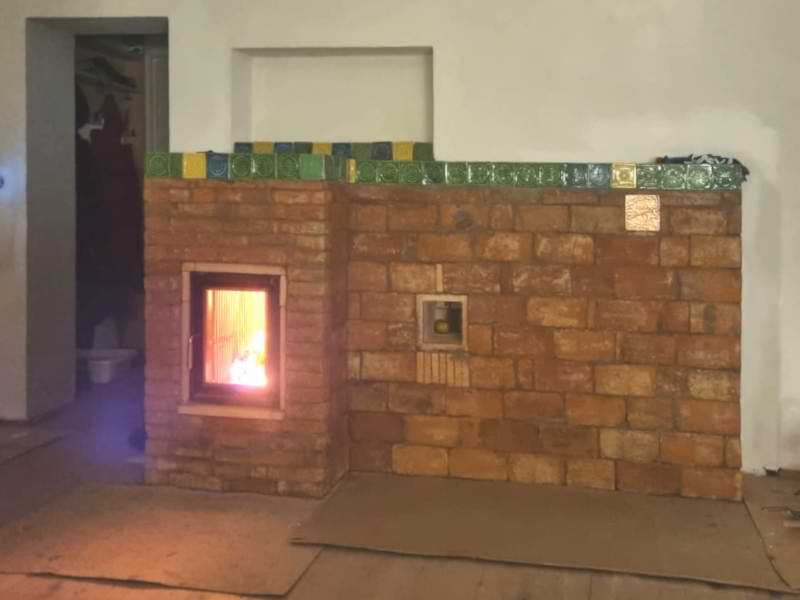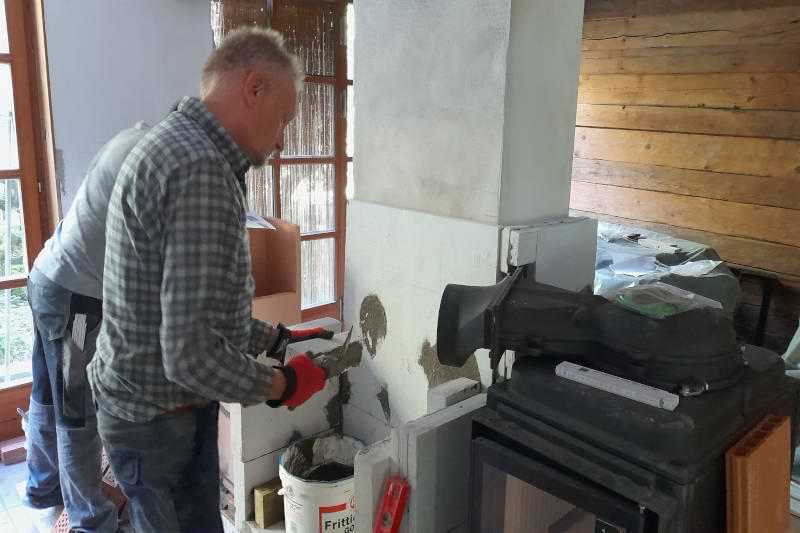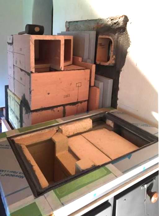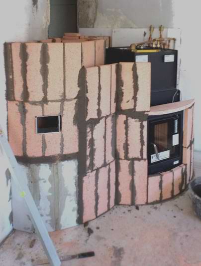 „Wir heizen den Ofen meist einmal am Tag. Das reicht für Wärme rund um die Uhr. Alle Hohlräume zwischen den Zügen haben wir mit Ziegeln ausgemauert.“
