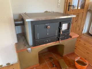 „Den Ofen haben wir selbst gebaut und mit einem Freund zusammen verputzt. Alles war einfacher als wir dachten. Der Lehm strahlt die Wärme fantastisch ab. Auf der Bank zu sitzen fühlt sich richtig gut an. Der Ofen erfreut uns täglich und „wärmt“ auch, wenn er nicht beheizt ist. Danke für die gute Arbeit.”