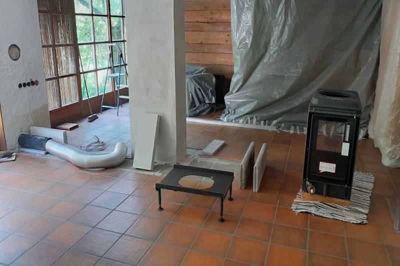 Historisches Steinhaus in der Bretagne. Schnelle Wärme für mehrere Räume und sehr gut Wärme speichern. Mit einem Kombiofen geht das am besten.
