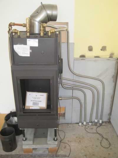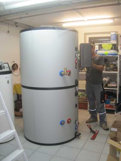Ofenbrennraum Olsberg Profi-W, Pufferspeicher Hagos 850l, Solaranlage Hagos 12m2.